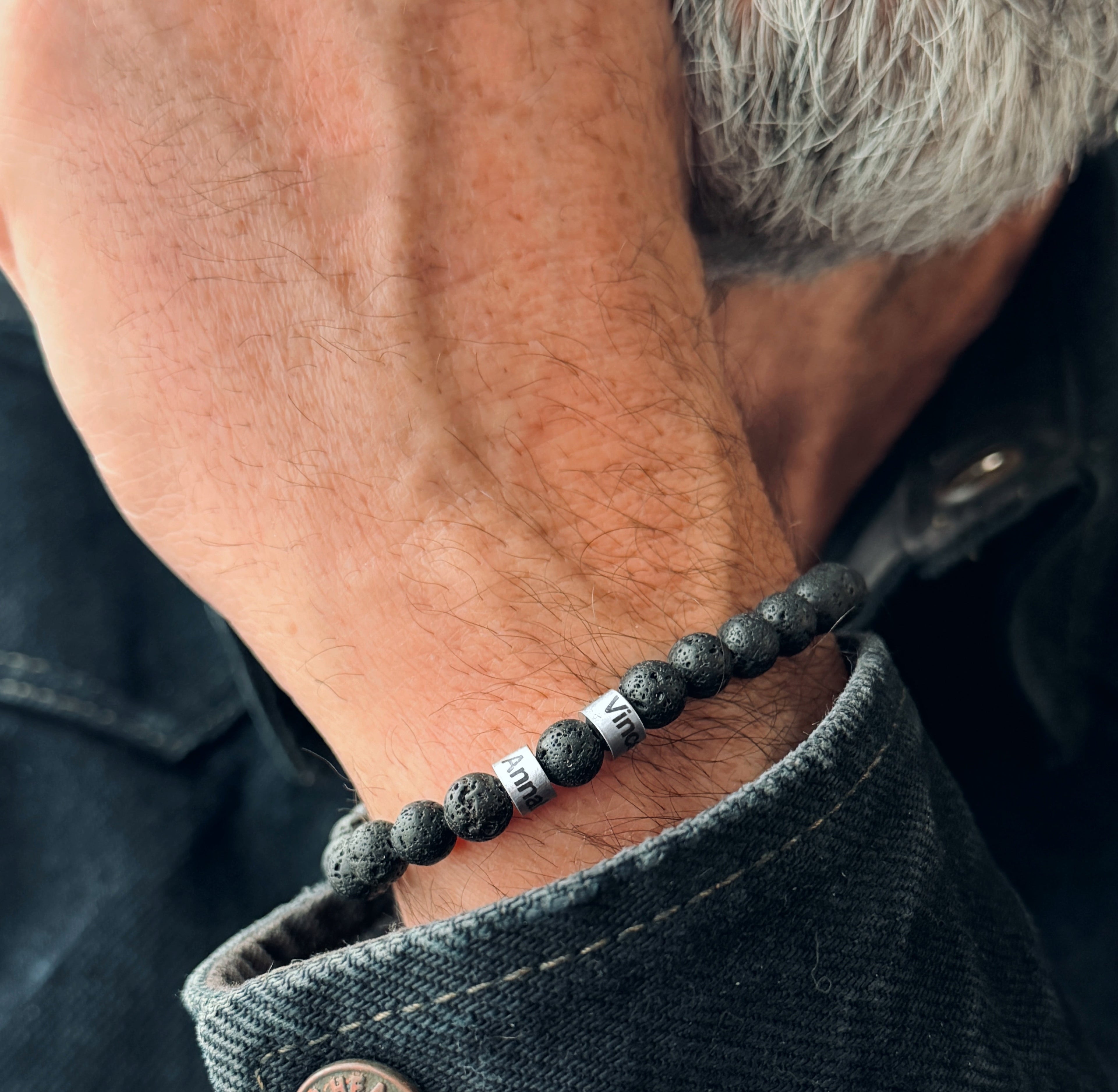 Männerarmband mit Namen & Naturstein 0nyx 8mm